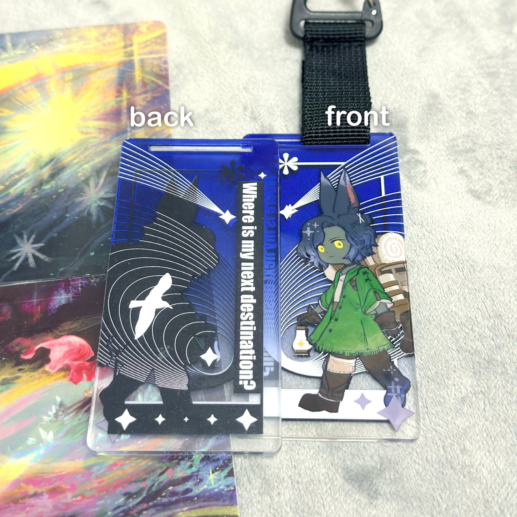 Each package contains: an acrylic piece, a carabiner, and a matching strap.